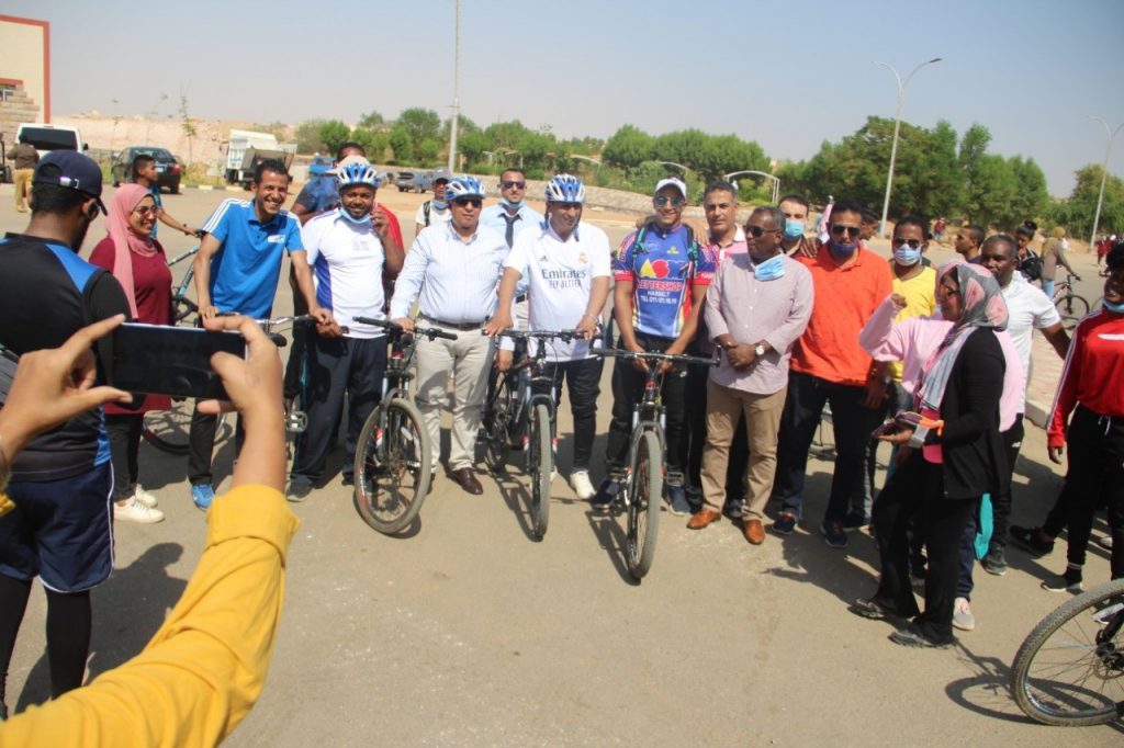 شارك يوم الاربعاء الاستاذ الدكتور/ أحمد غلاب محمد – رئيس جامعة اسوان في ماراثون سباق الدراجات الذي نظمته كلية التربية الرياضية بالتعاون مع الإدارة المركزية لرعاية الشباب بالجامعة تحت رعاية الاستاذ الدكتور خالد عبدالغفار وزير التعليم العالي والبحث العلمي وتحت إشراف الدكتور صبحي محمد حسانين نائب رئيس الاتحاد الرياضي للجامعات والدكتور هشام الجيوشي سكرتير الاتحاد .