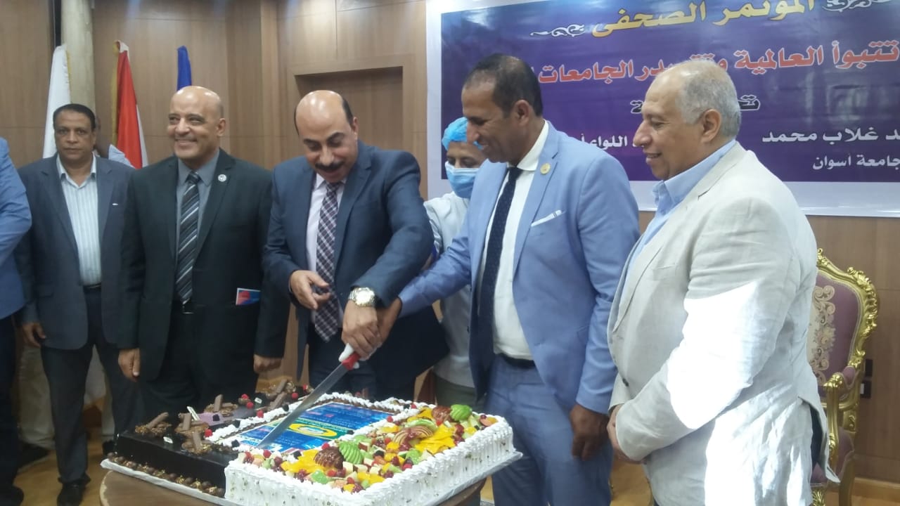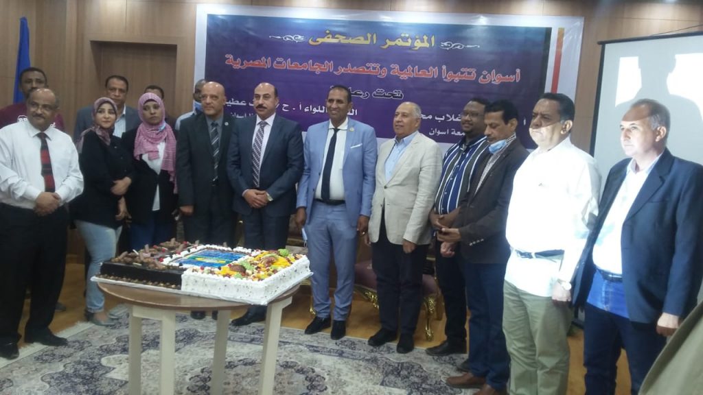 عقدت جامعة أسوان مؤتمرا صحفيا بحضور اللواء أشرف عطية محافظ أسوان والأستاذ الدكتور أحمد غلاب محمد رئيس جامعة أسوان صاحب الإنجاز بمناسبة تصنيفات التايمز البريطاني التي حققتها جامعة أسوان أفضل جامعة مصرية لعام 2020 لعام الثاني علي التوالي وذلك بحضور الدكتور أيمن عثمان نائب رئيس الجامعة للدراسات العليا والبحوث والدكتور مجدي محمد علي نائب رئيس الجامعة لخدمة المجتمع وتنمية البيئة والدكتور أشرف معبد مدير المستشفى الجامعي وعدد من الصحفيين والإعلاميين بالمحافظة .