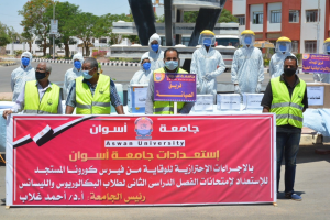 Today corresponding to 5th July 2020 Aswan University president Prof. Ahmed Ghallab inspected the university’s preparations to hold the second-semester exams for the final-year students. 7000 undergraduate and graduate students will take the exams which in some faculties are scheduled to be held on 7th July while in the remaining faculties on the 11th of July 2020. Prof. Ghallab stressed that the university provided means of disinfection and sterilization as well as university-produced face masks. he said that ambulances were provided in Sahary and Aswan Al Gadeda campuses, he visited the cliniques and stressed on the presence of the medical staffs. In the same context, the vice president of graduate studies and research Prof. Ayman Othman said that the university took all the precautionary measures in the examination halls to protect the students against the novel COVID-19. Prof. Ghallab was accompanied by Prof. Ayman Othman, the dean of the faculty of engineering Prof. Loay Saad Al Dein Nasrat, the dean of the faculty of science Prof. Atef Abd El Qader and the faculty of science’s vice dean of education and student’s affairs Prof. Mohammed Abd Al Moneam Raslan.