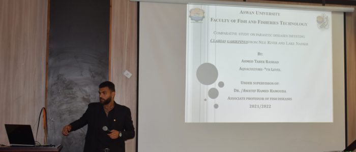 قامت كلية تكنولوجيا المصايد والأسماك اليوم السبت الموافق26/6/2021 في قاعة وحدة الدراسات البيئية والتنمية بعقد مشروع تخرج لطلاب السنة النهائية للعام الجامعي 2020/2021 ، حيث يقوم الطلاب بعرض مشاريع التخرج التي قاموا بإجرائها علي مدار عامين في السنة الثالثة والرابعة .