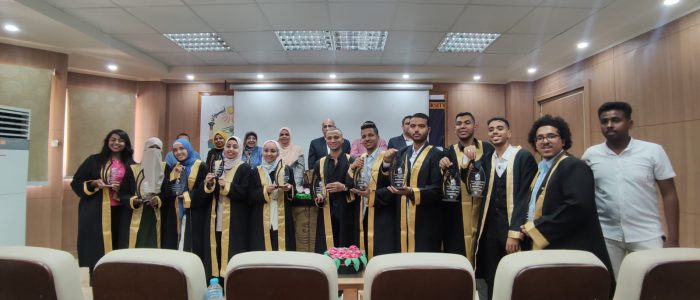 وفي نهاية مناقشة مشروعات التخرج قدم طلاب المستوى الرابع درع الشكر والتقدير للأستاذ الدكتور صلاح الدين الساعي – عميد الكلية – وقدم سيادته واساتذة الكلية دروع التفوق للطلاب مع تمنياتهم بالتوفيق للطلاب في حياتهم العملية بعد التخرج.