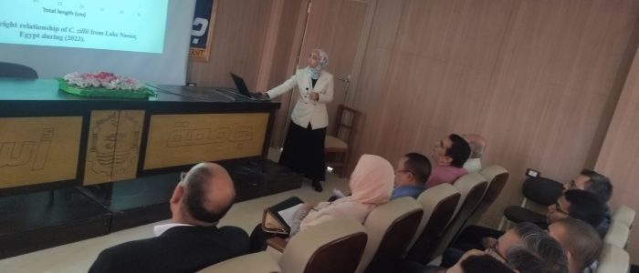 تناول بعض الطلاب ببرنامج المصايد الداخلية طرق تقدير المخزون السمكي ببحيرة ناصر وقدم اخرون بيانات حول التركيب النوعي للمصيد من البحيرة تحت اشراف الأستاذ الدكتور/ الحسبن عمار ادم- أستاذ بيولوجيا الأسماك والأستاذ الدكتور / خالد بوسف أبو الفضل- أستاذ مساعد بيولوجيا الأسماك ووكيل الكلية لشئون التعليم والطلاب