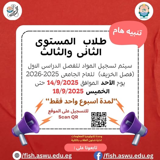 تنبيه هام لطلاب المستوى الثاني والثالث