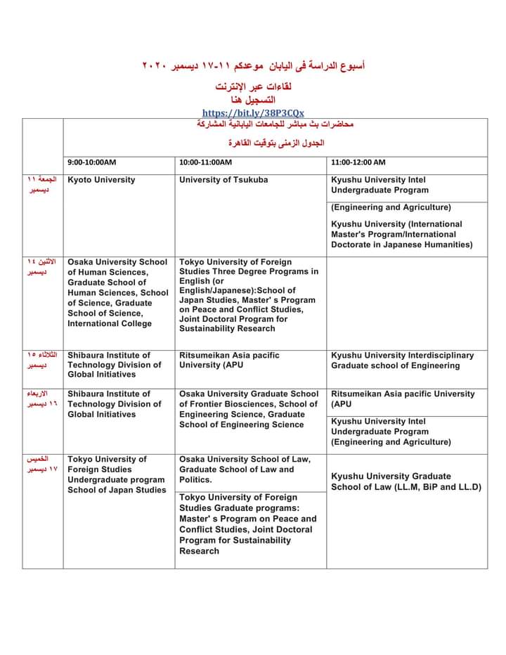 أسماء الجامعات للتسجيل في الفاعليات للتعرف علي التفاصيل للتعرف علي الدراسة في اليابان