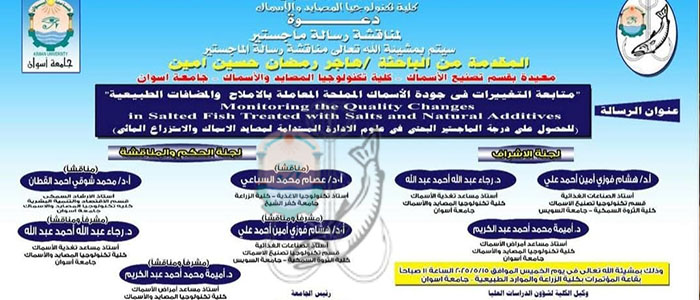 مناقشة اول رسالة ماجستير تحت برنامج علوم الإدارة المستدامة لمصايد الاسماك و الاستزراع المائى اليوم...