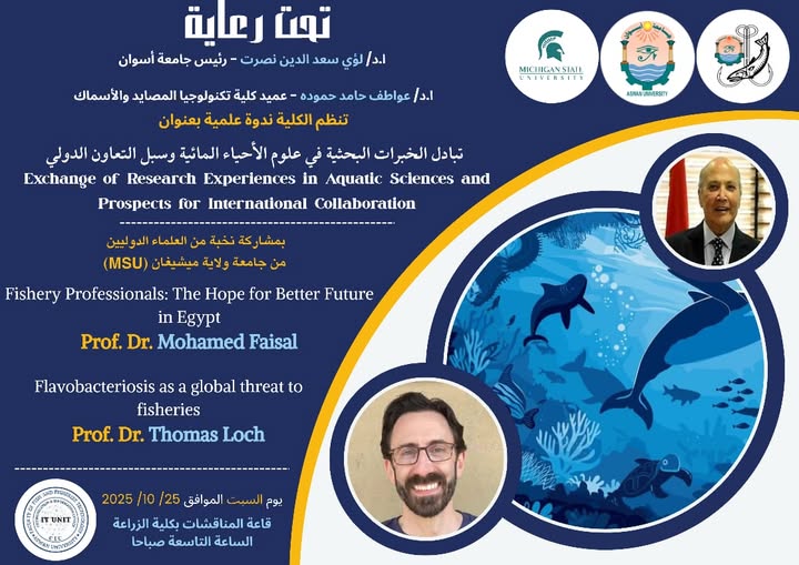 فى ظل اهتمام جامعة اسوان بتطوير منظومة البحث العلمى نظّمت كلية تكنولوجيا المصايد والاسماك ندوة...
