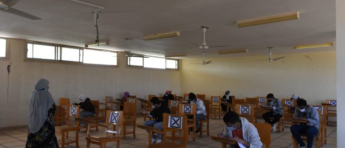 واكد السيد الأستاذ الدكتور/ صلاح الساعي – عميد الكلية على التطبيق الحازم لكافة الإجراءات الاحترازية التي أقرتها الجامعة والكلية بشأن انتظام سير الامتحانات، وتابع سيادته سير العمل باللجان ومدى الالتزام ، والتأكد من توفير الأجواء الملائمة للطلاب داخل اللجان لمساعدتهم في أداء الامتحان.