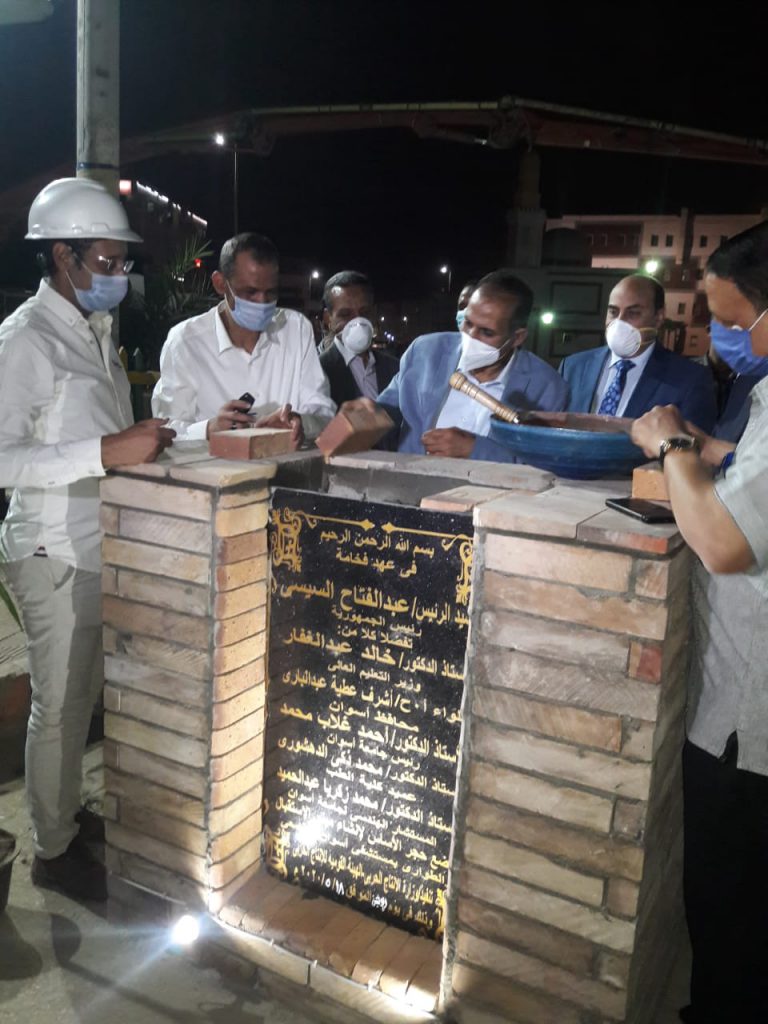 وشهد وضع حجر الأساس لانشاء مستشفى الاستقبال والطوارئ الجديد اللواء أشرف عطية محافظ أسوان والدكتور أحمد غلاب محمد رئيس جامعة أسوان والدكتور محمد زكي الدهشوري عميد كلية الطب.