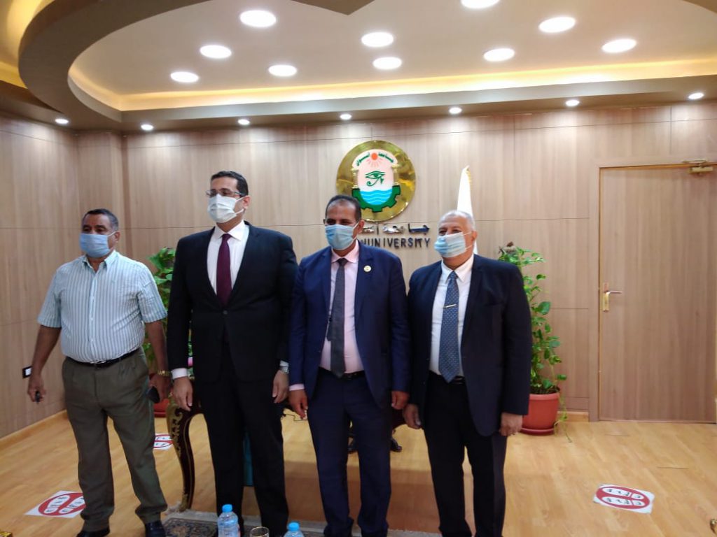 أشاد الدكتور/ هشام عبدالسلام رئيس الجامعة المصرية بأهمية التعاون مع جامعة أسوان ودور الدكتور أحمد غلاب رئيس جامعة اسوان ودعمه الدائم والمستمر ومتابعته لطلاب الجامعة المصرية والعمل على ازالة جميع العقبات التى تواجه الجامعة المصرية للتعلم الالكترونى بفرع أسوان من خلال توفير قاعات الدرس للطلاب وشبكات الإنترنت للحصول على مستوى عالى للمنظومة التعليمية، وذلك بحضور الدكتور مجدي محمد علي نائب رئيس الجامعة لشؤن خدمة المجتمع وتنمية البيئة والدكتور محمد نجدي