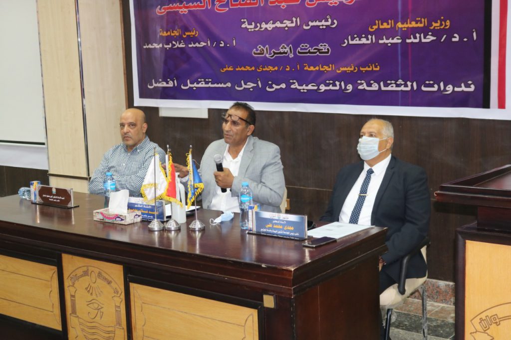 وأكد الدكتور أحمد غلاب على أهمية هذه الندوات الثقافية والتوعية التي تقام تحت رعاية الرئيس عبدالفتاح السيسي رئيس الجمهورية والدكتور خالد عبدالغفار وزير التعليم العالي والبحث العلمي وذلك في إطار توعية الطلاب من المخاطر التي تهدد أمن الوطن واستقراره وتعريف الشباب من ابناءنا الطلاب بما تم إنجازه من مشروعات قومية عملاقة تخدم الاقتصاد المصري وتعزز من بناء الدولة الحديثة والعمل علي تثبيت أركانها.